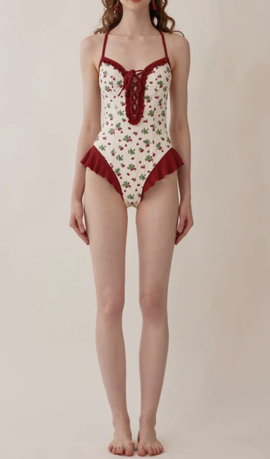 nancy Ruched Flower One Piece Swimsuit In Cream