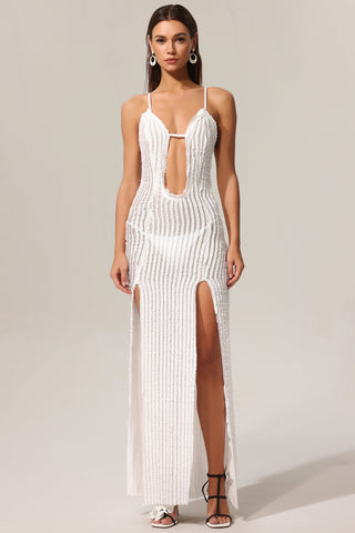 Serena Sleeveless Hollow Out High Slit Tassels Maxi Dress