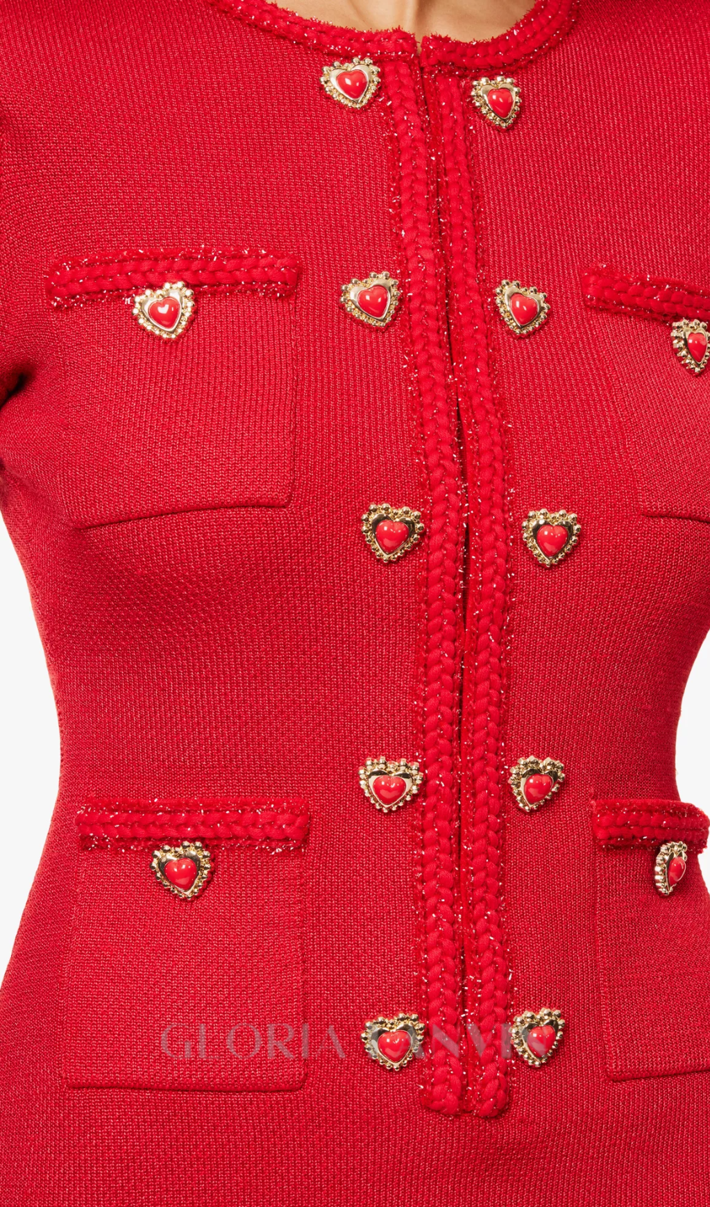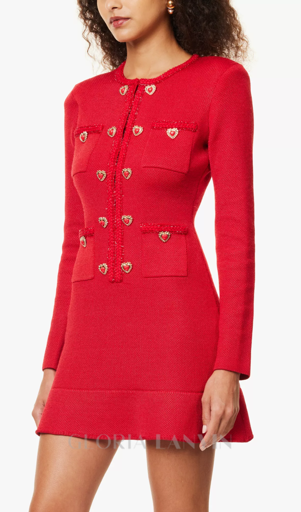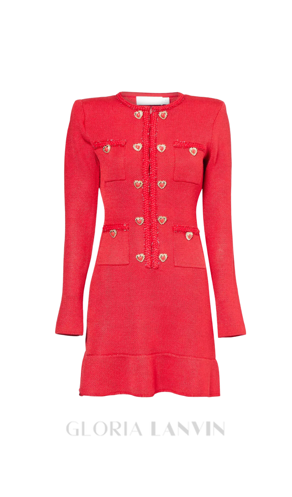 Stay cozy and stylish in this playful mini dress, featuring a round-neck, patch pockets and a vibrant red color. Perfect for any occasion, this dress is sure to become your new go-to favorite. (Warning: may cause excessive compliments and double takes!)