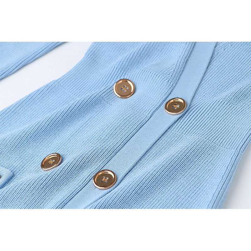 - Einfarbig, blau, Strick, Metall, Unterteil, Minikleid