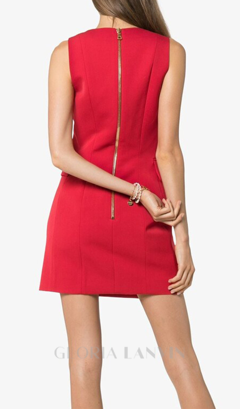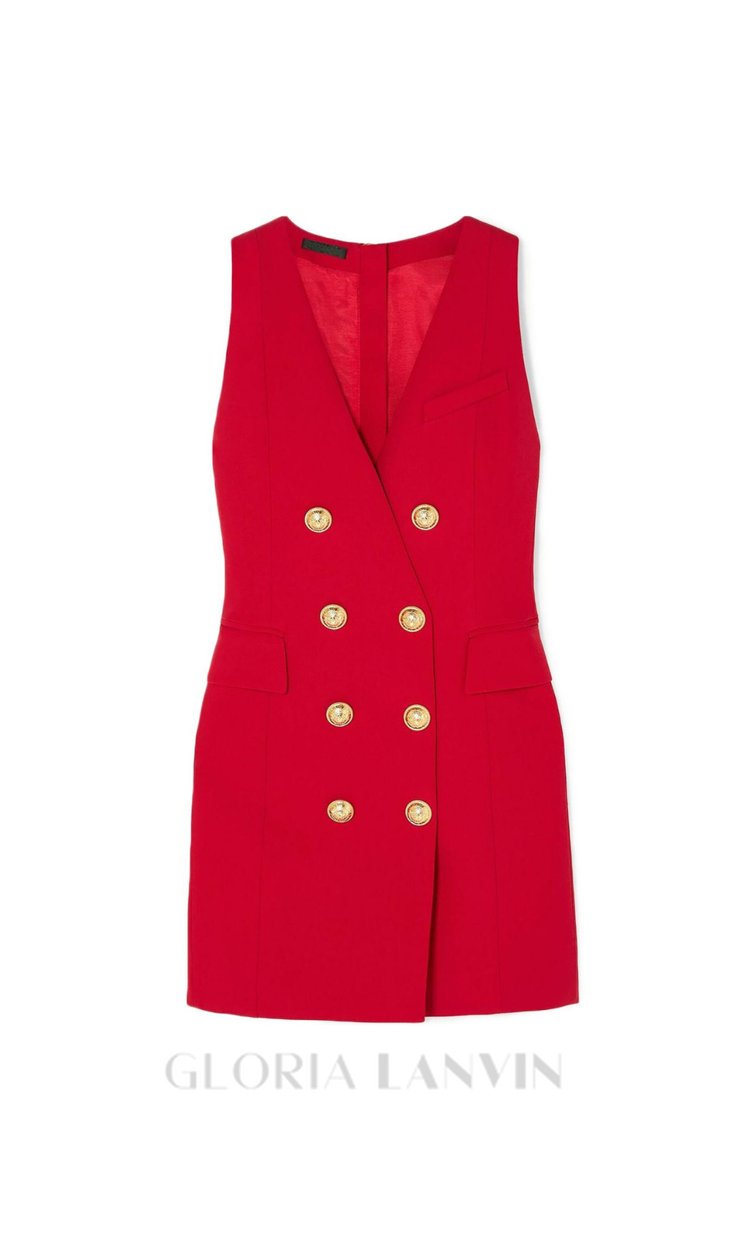 HELEN ROTES METALLKNÖPFE DOPPELREIHENDES ÄRMELLOSES MINIKLEID