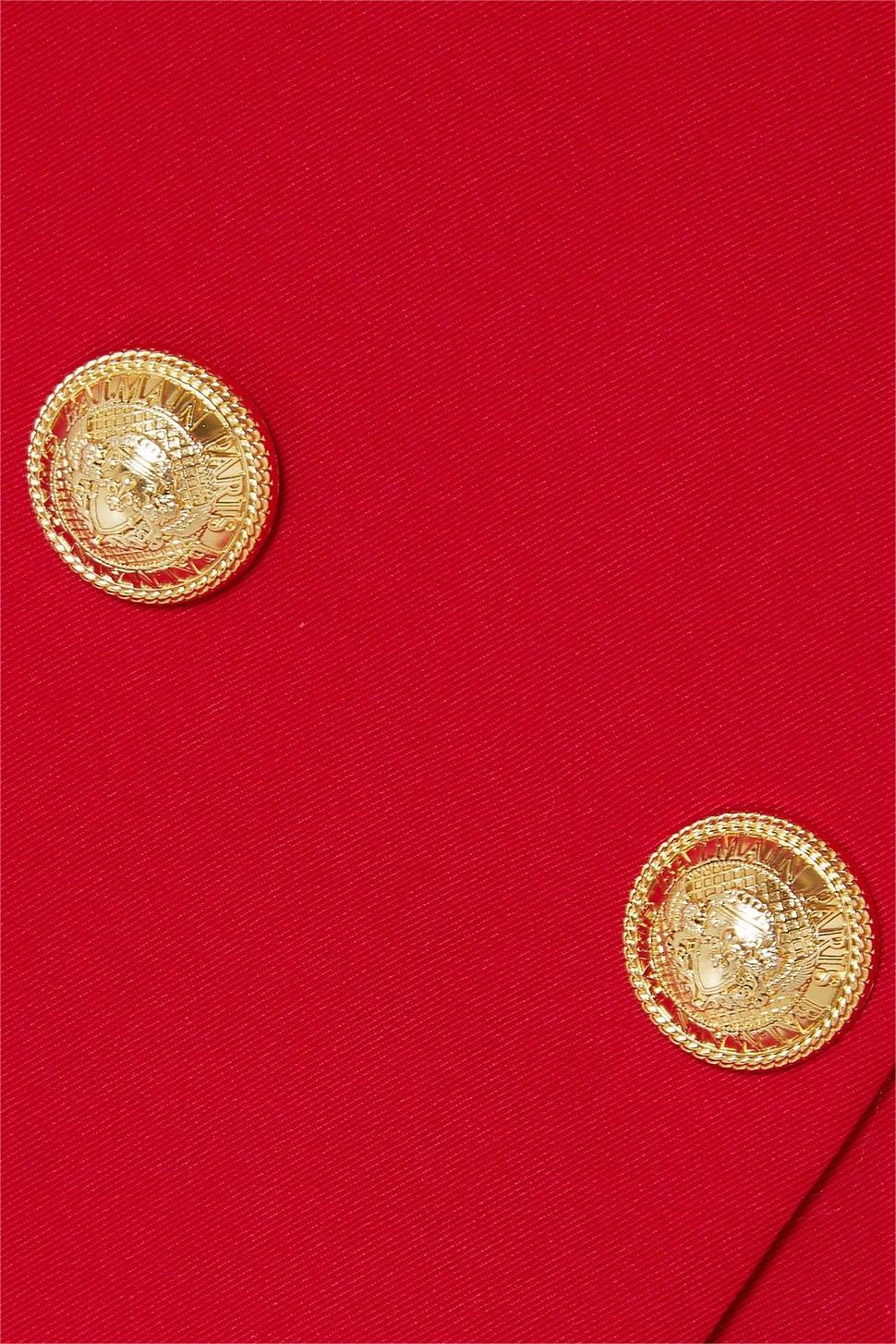 - Rotes, doppelreihiges, ärmelloses Minikleid mit Metallknöpfen