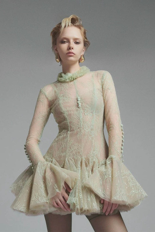 Neckholder-Minikleid aus Jacquard-Spitze mit ausgestelltem Saum