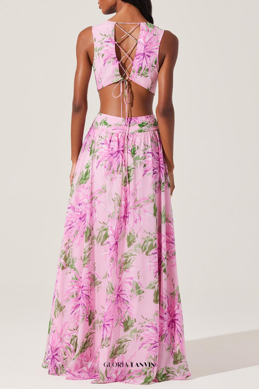 Alyssa Rüschen-Maxikleid mit Blumenausschnitt in Rosa