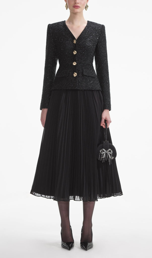 ANZUG AUS PELZ-TWEED-JACKE MIT FLITTER
