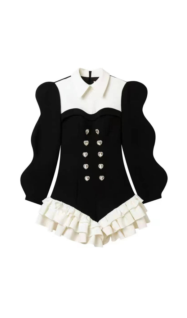 Jumpsuit mit Rüschenkragen und schwarzem Saum