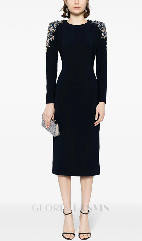 LANGÄRMELIGER JUMPSUIT MIT KRISTALLAUSSCHNITT IN SCHWARZ