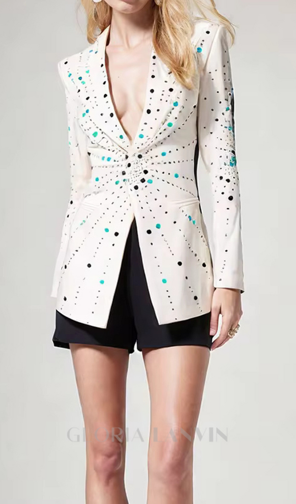 GLADYS WEISSER BLAZER MIT SPITZENREVERS UND PERLENVERZIERUNG