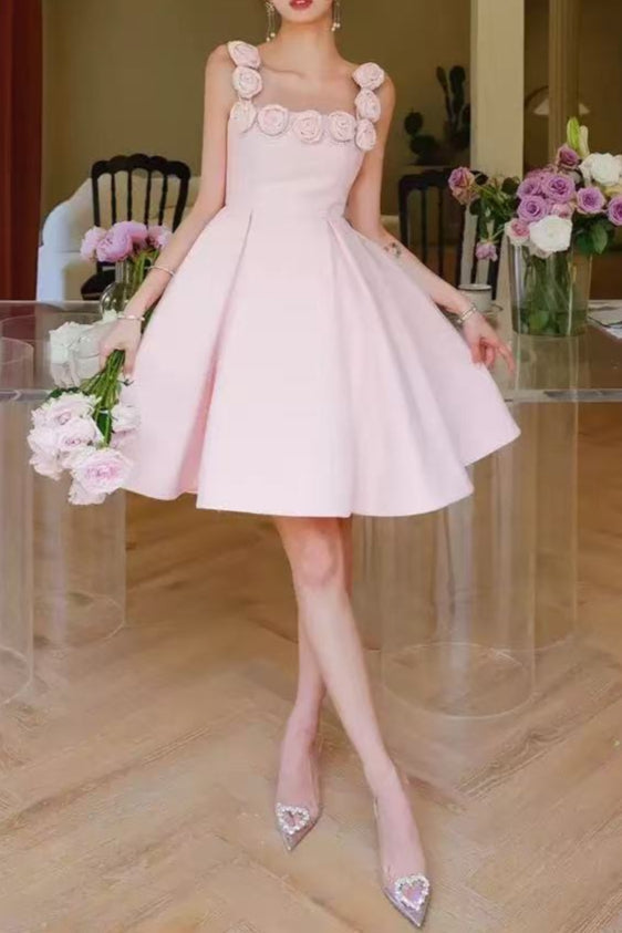 MINIKLEID MIT STRASS-ROSENAPPLIKATIONEN IN ROSA