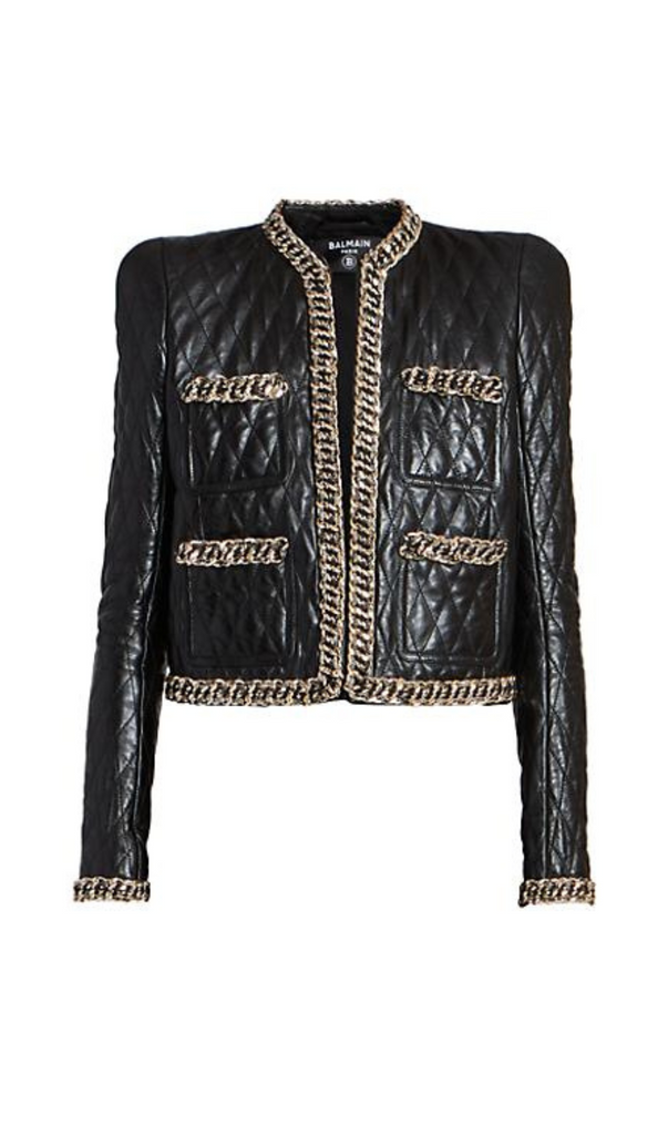 SCHWARZE STEPPJACKE AUS LEDER MIT KETTE