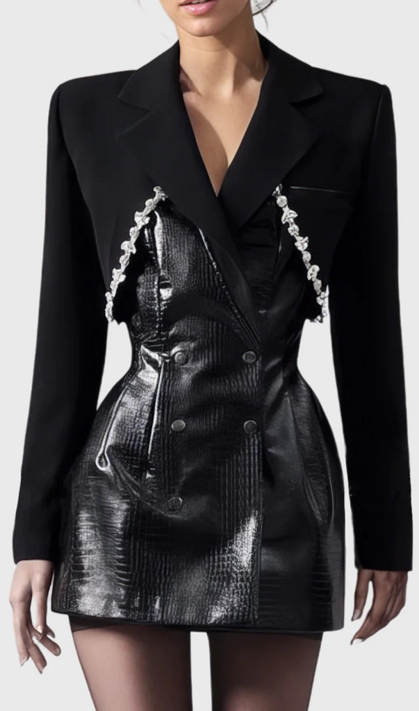 TAILORED BLAZERKLEID MIT LEDER SCHWARZ