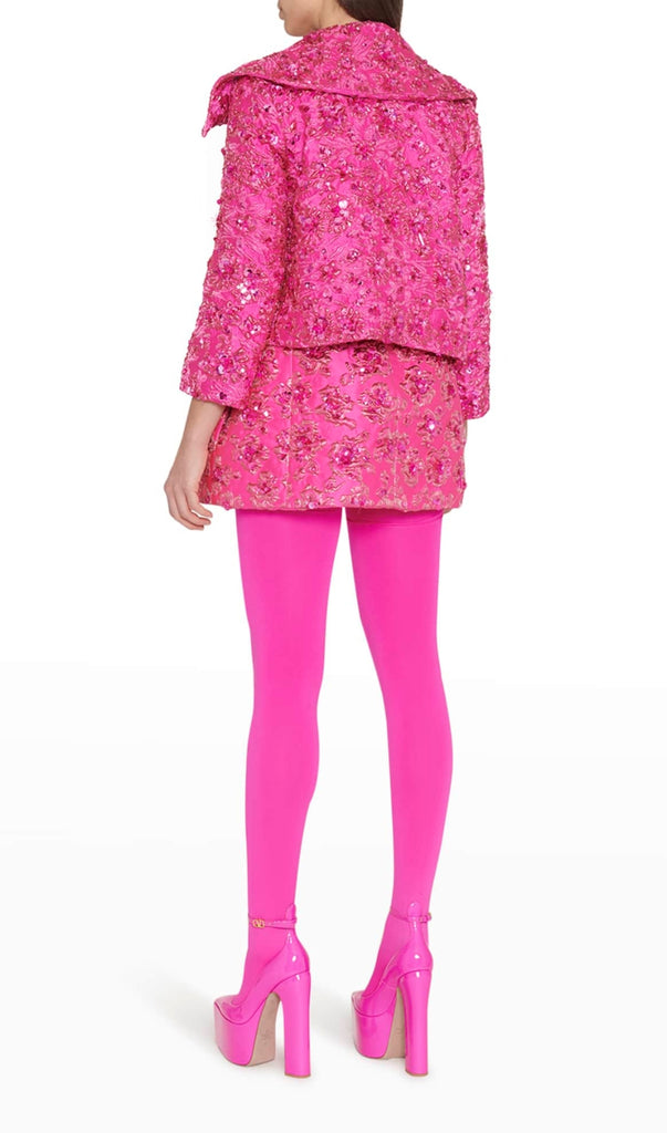 Dieser Jacquard-Blazer mit Blumenmuster ist die perfekte Mischung aus Eleganz und Mode. Der Jacquardstoff ist zart und dennoch robust, und das zarte Blumenmuster verleiht jedem formellen Look eine neue Eleganz. Dieser Blazer ist die ideale Wahl für jeden besonderen Anlass.