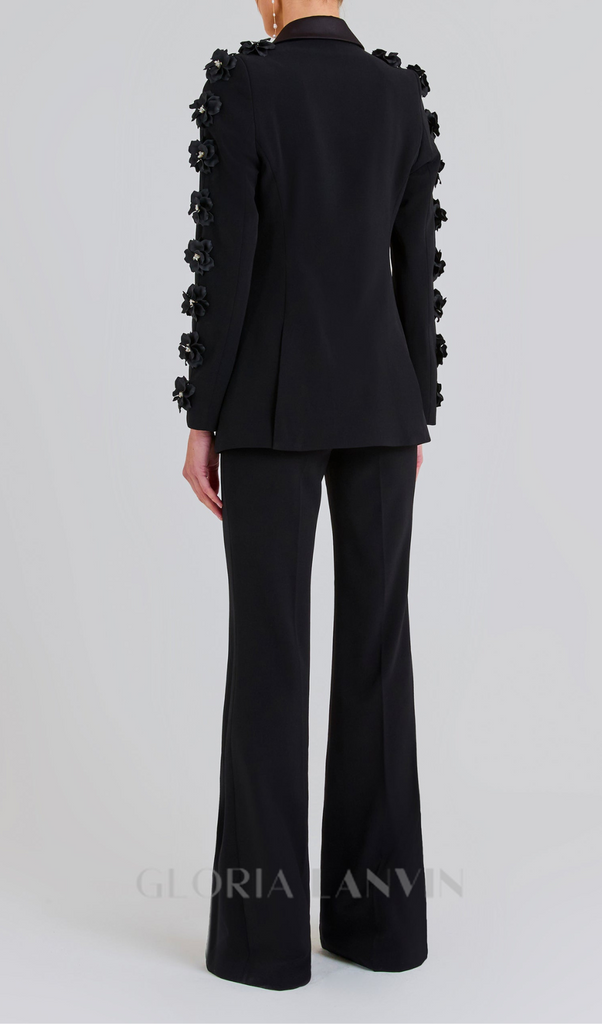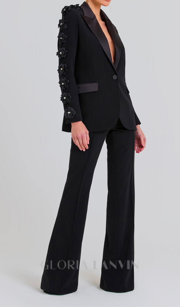 Der schwarze Blazer mit verspielten Blumenapplikationen sorgt dafür, dass Sie in jeder Menge auffallen. Perfekt für einen unkonventionellen und einzigartigen Look (ohne sich dabei zu ernst zu nehmen)!