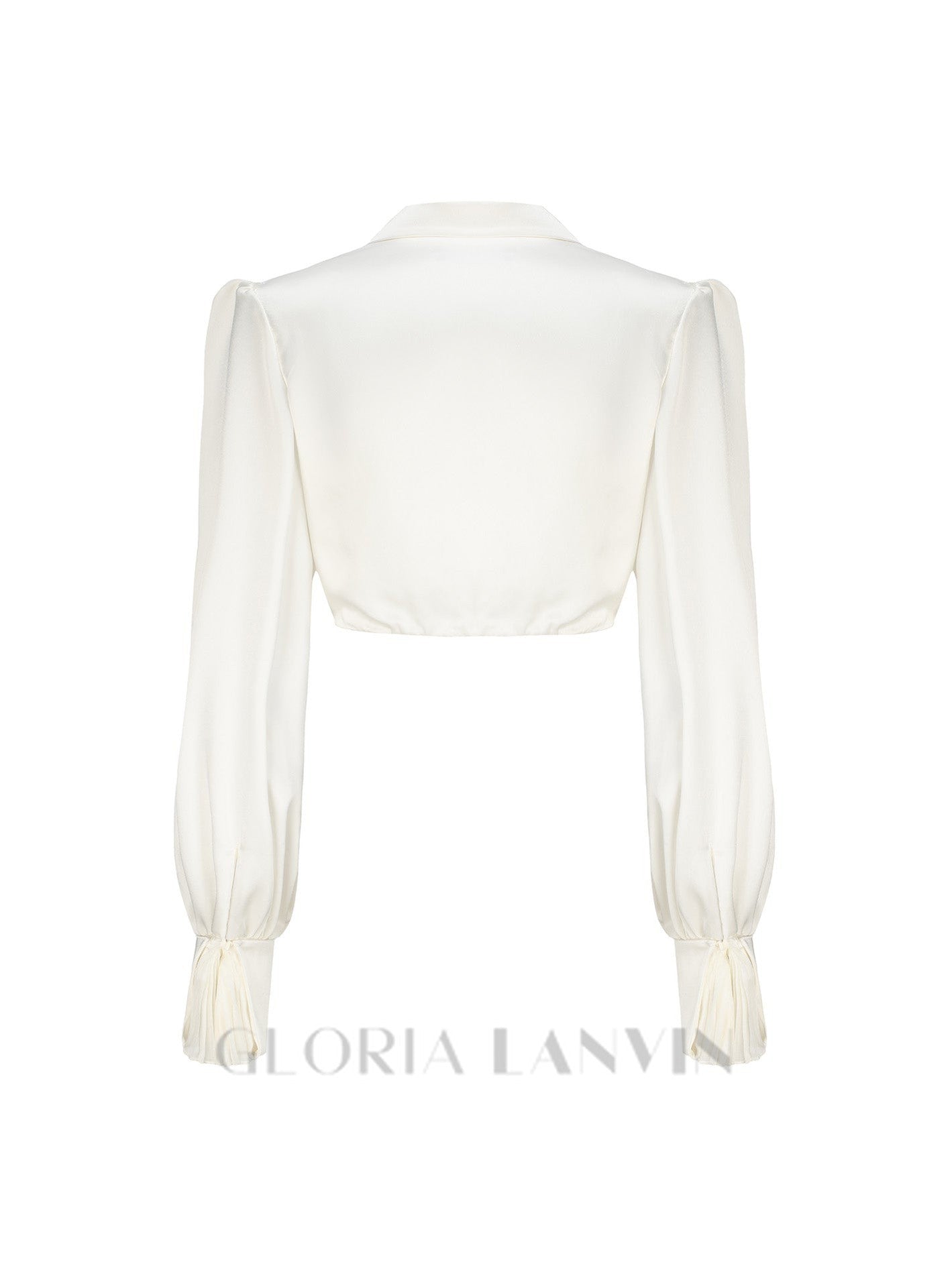Dieses aus luxuriösem Satin gefertigte Top im Cropped-Schnitt betont die Taille auf besonders elegante Weise. Jedes Detail wurde sorgfältig ausgewählt, um Raffinesse und Stil auszustrahlen und macht es zu einem unverzichtbaren Kleidungsstück für jede Garderobe.