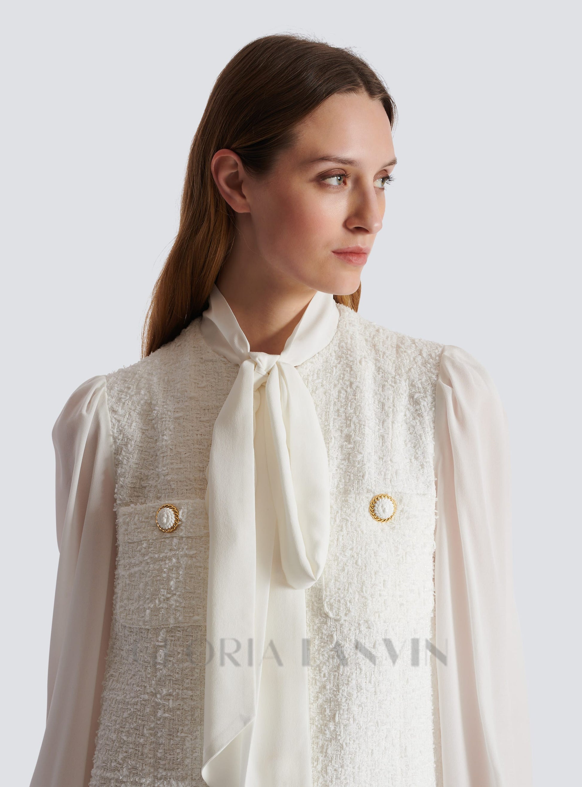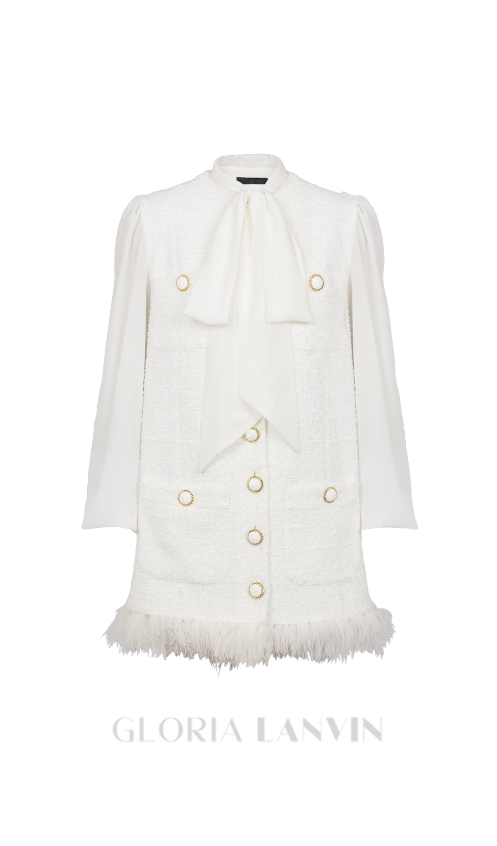 Weißes Tweed-Minikleid mit Schleifenkragen