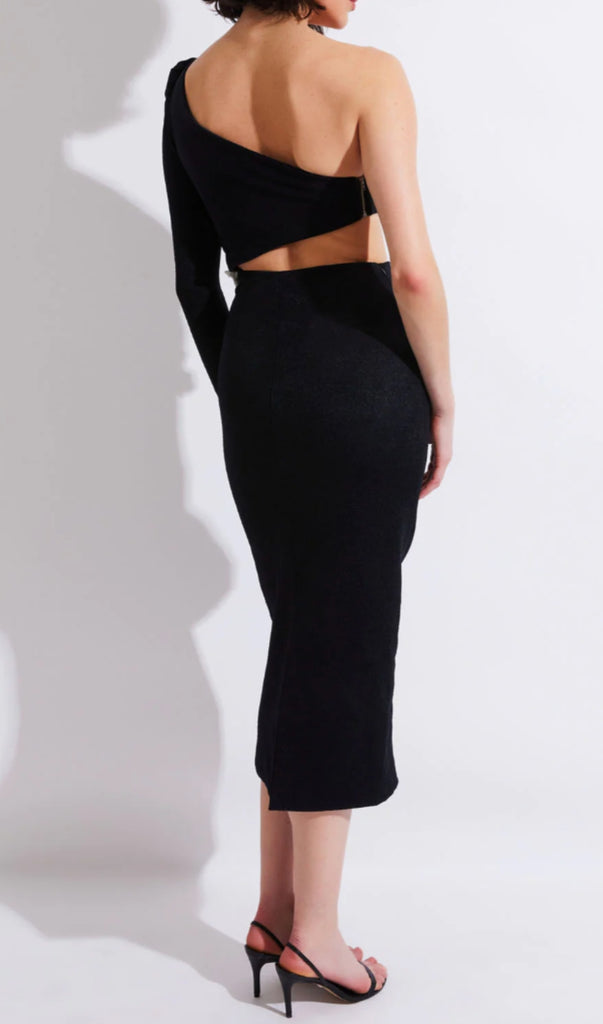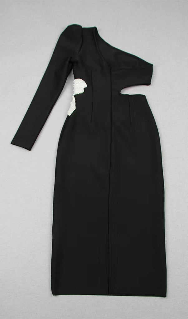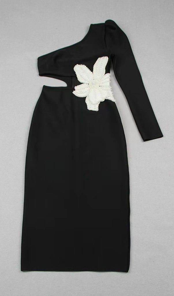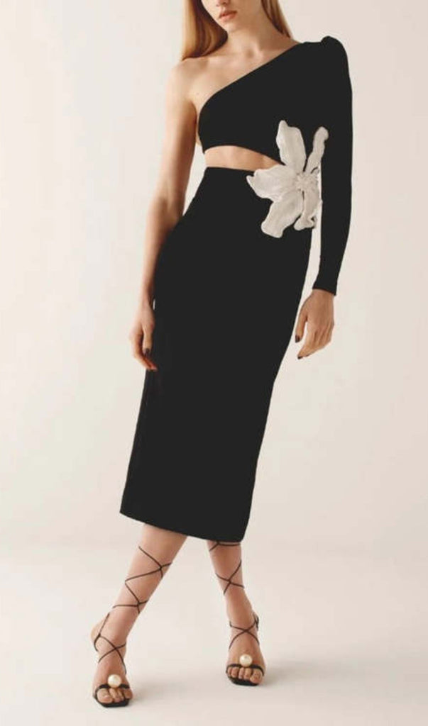 Lassen Sie Ihren Stil mit diesem One-Shoulder-Midikleid mit Blumenapplikationen erblühen! Es ist perfekt für einen Abend oder einen besonderen Anlass. Sein schwarzer Farbton, die One-Shoulder-Silhouette und die atemberaubenden Blumendetails machen es zum ultimativen koketten und lustigen Look. Also schnappen Sie sich eines dieser Hingucker und werden Sie zum Mittelpunkt der Party!