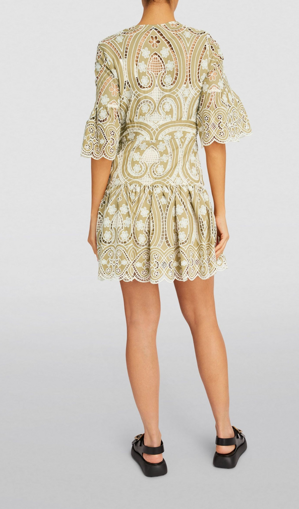 MINIKLEID MIT V-AUSSCHNITT, RÜSCHEN UND TROMPETENÄRMELN – Gloria Lanvin