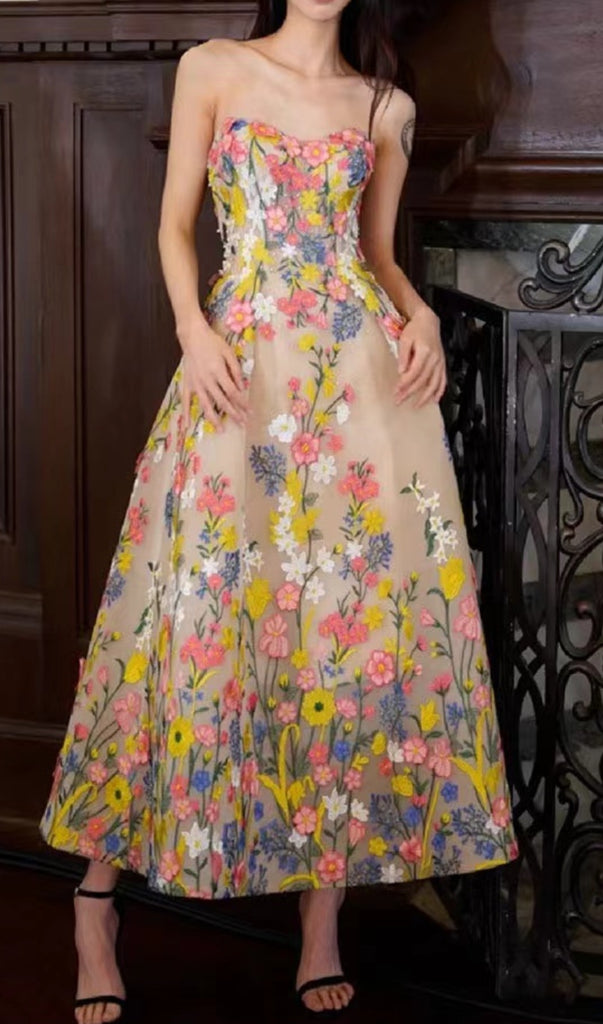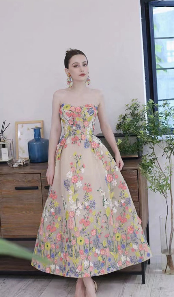 Das wunderschöne Blumendesign in Kombination mit 3D-Blumen und Kristallen sorgt für einen zeitlosen Look, in dem Sie sich garantiert wie eine Prinzessin fühlen. Mit seiner bequemen Passform und schmeichelhaften Länge ist dieses Kleid perfekt für jeden besonderen Anlass. Verpassen Sie nicht die Chance, in diesem wunderschönen Abendkleid zu glänzen.