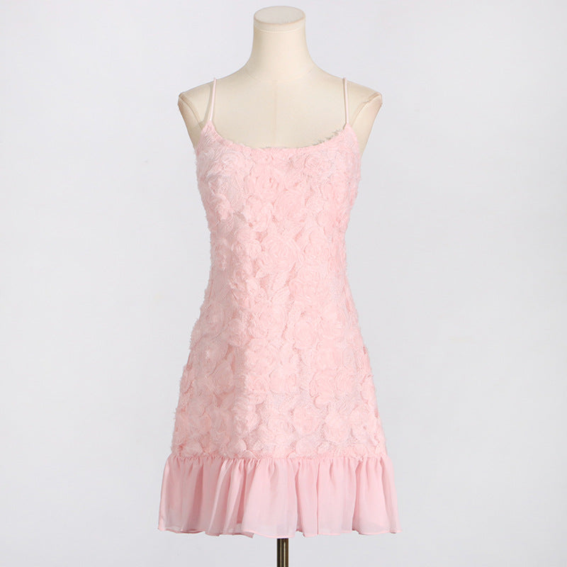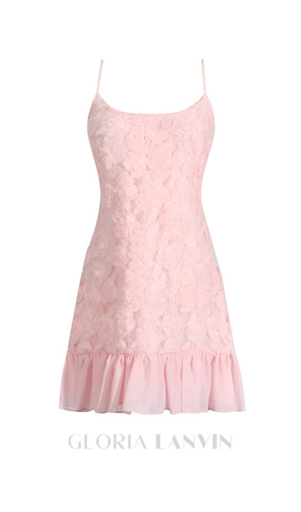 Minikleid mit Blumenapplikationen und Faltenrock in Rosa