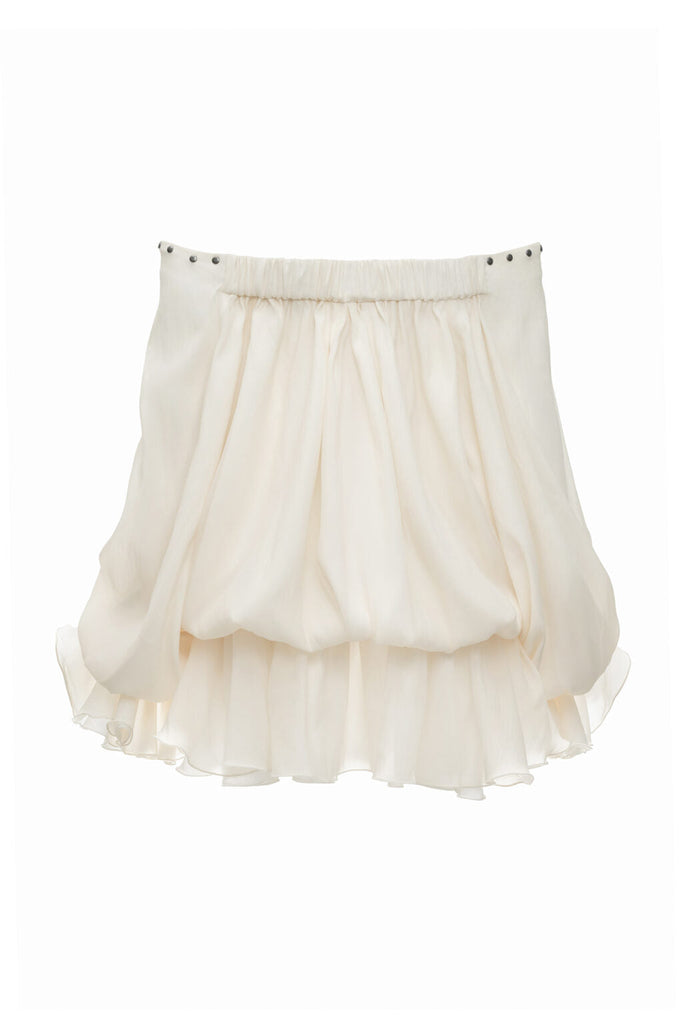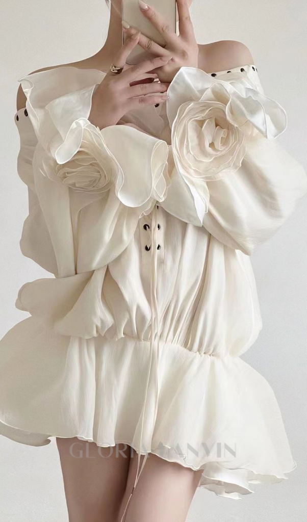 Das schulterfreie Design verleiht dem Kleid eine feminine Note, während die ausgestellten Ärmel für einen verspielten Akzent sorgen. Dank der Minilänge ist es perfekt für jeden Anlass. Das strahlende Weiß verleiht jedem Outfit einen klassischen Touch.