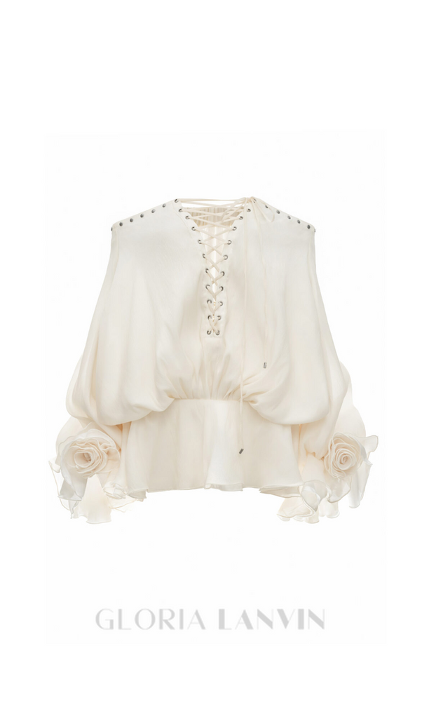 Weißes, schulterfreies Mini-Hemdkleid mit ausgestellten Ärmeln. – Gloria Lanvin
