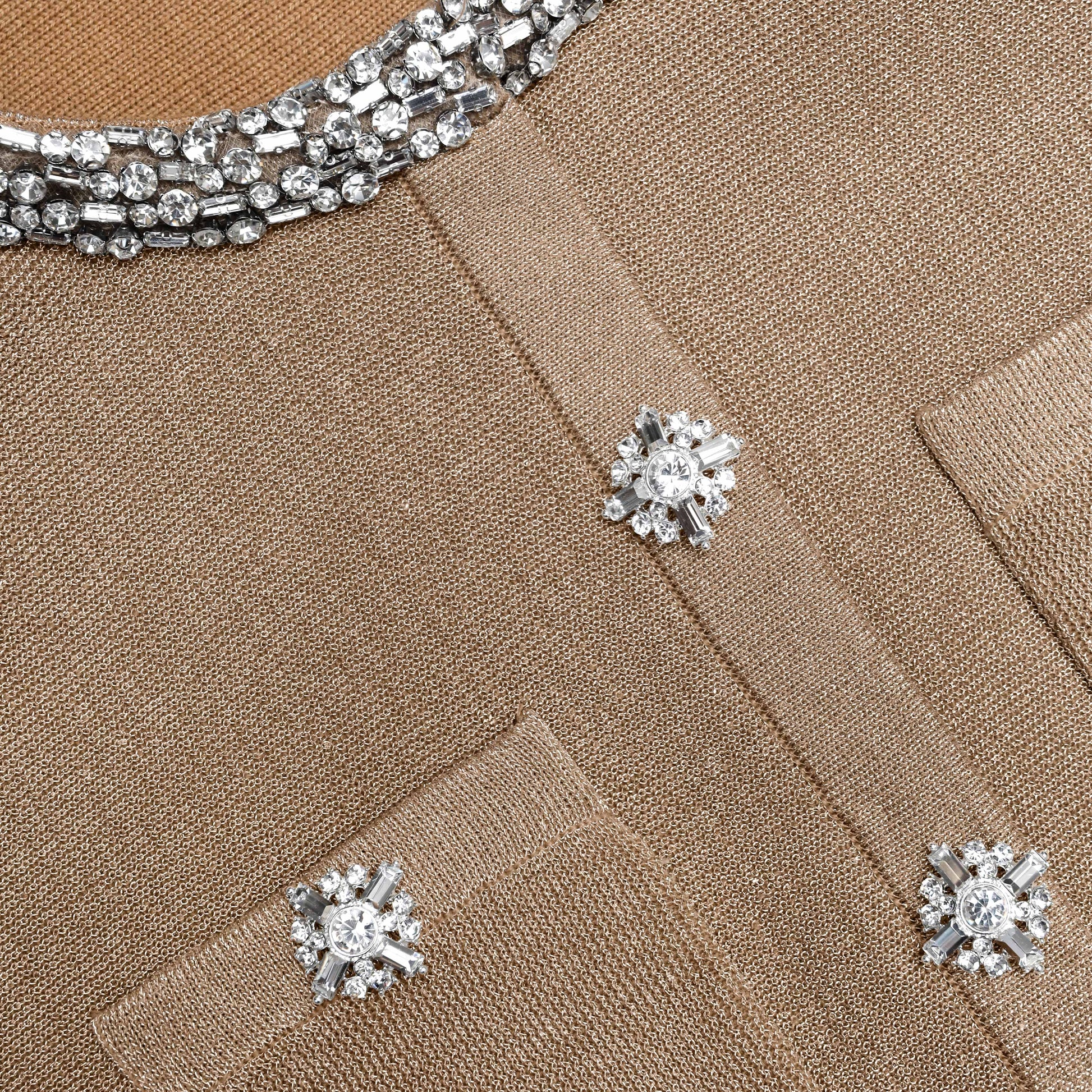 Elevate your evening look with this stunning Phoenix Gold Crystal Trim Knit Mini Dress. Crafted from soft, luxurious knit fabric, this dress features eye-catching crystal trim detailing that catches the light beautifully. The flattering mini silhouette offers a modern, confident style perfect for special occasions or nights out. The supportive knit construction ensures all-day comfort while maintaining its elegant shape. Whether you're heading to a celebration or making a statement, this dress empowers you to feel radiant and beautiful.