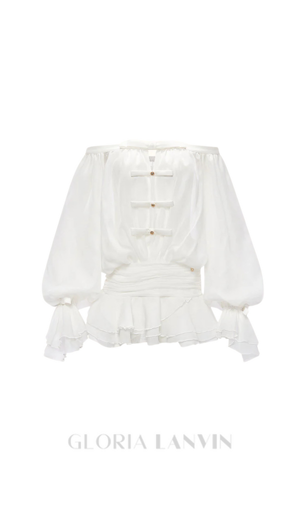 Trägerloses Minikleid mit Puffärmeln in Perlweiß – Gloria Lanvin