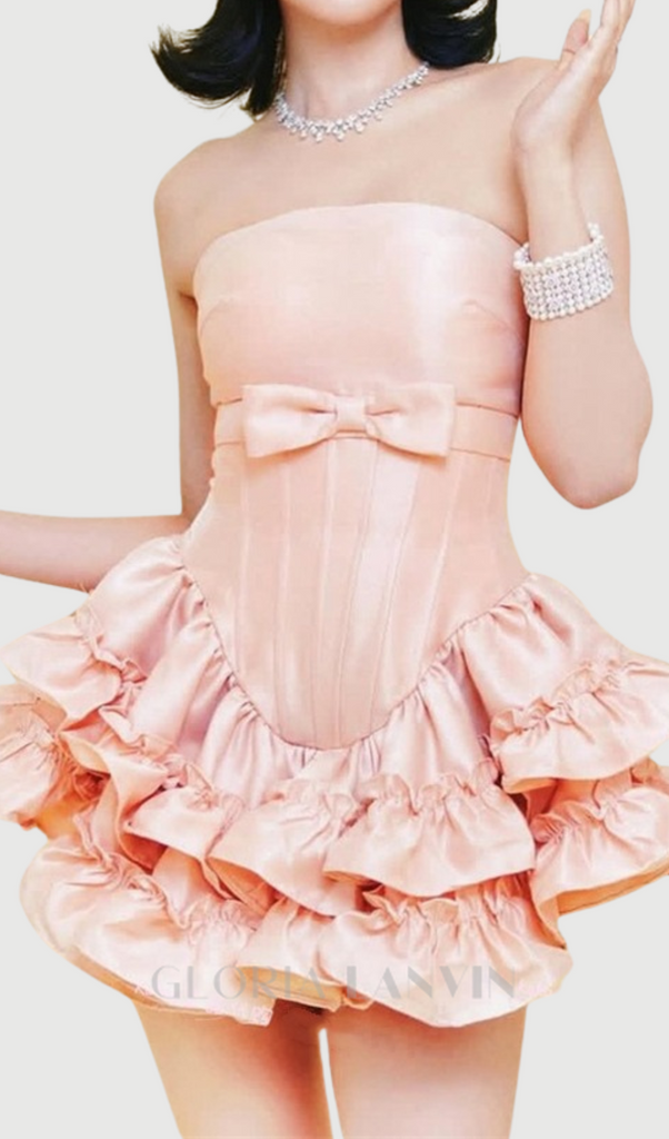 Wendy Minikleid mit gerafftem Saum, trägerlos, in Rosa – Gloria Lanvin