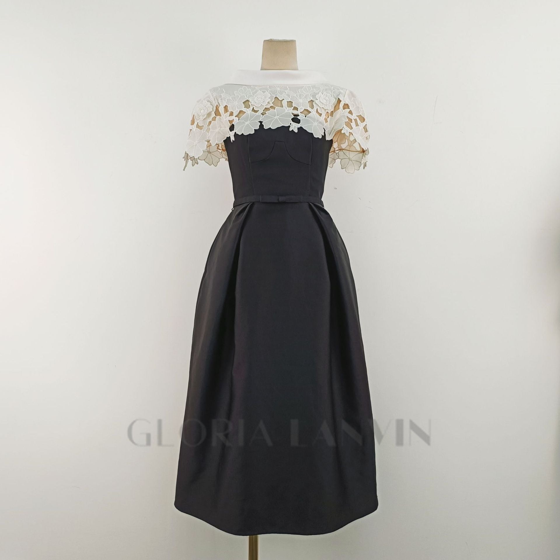 Die schwarze Farbe sorgt für einen zeitlosen und vielseitigen Look, perfekt für jeden Anlass. Die figurschmeichelnde Silhouette betont Ihre Figur und das aufwendige Spitzendesign zieht alle Blicke auf sich. Mit diesem Kleid gelingt Ihnen ein atemberaubender und eleganter Auftritt.