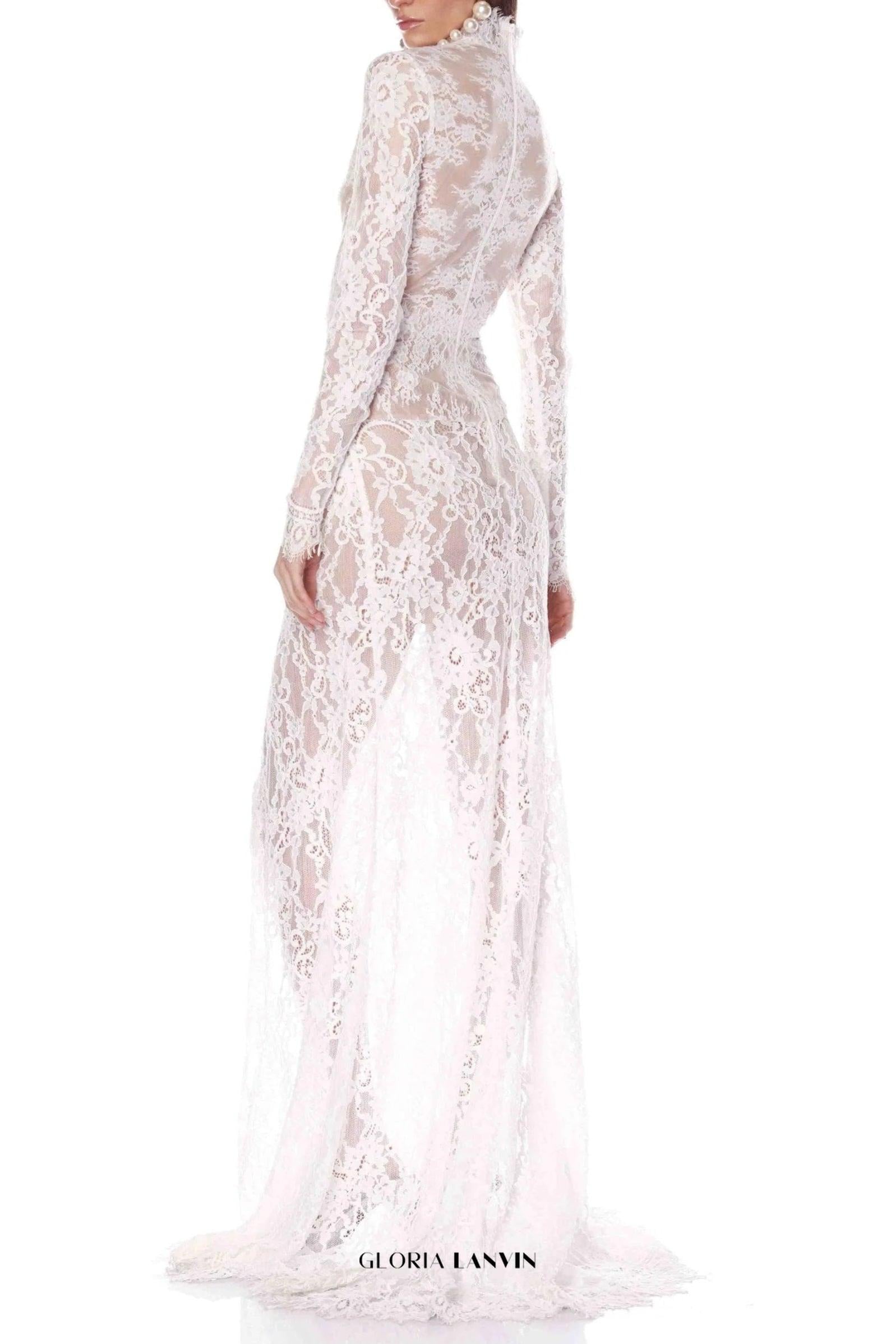 Juselius Maxikleid mit Spitzenausschnitt - Weiß