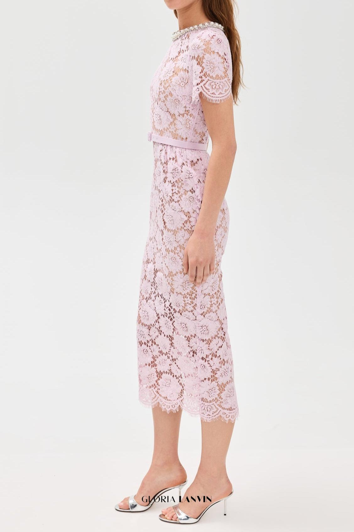 Werten Sie Ihre Garderobe mit dem rosafarbenen Midikleid mit Perlenbesatz und Lochspitze auf – ein Kleid, das für raffinierte Eleganz steht. Zarte Lochspitzendetails verleihen dem Kleid Struktur und Weichheit, dezente Perlenapplikationen sorgen für einen edlen Schimmer. Die Midi-Länge bietet eine harmonische Silhouette und eignet sich für verschiedene Anlässe. Der leichte Stoff garantiert höchsten Tragekomfort, ob tagsüber oder abends. Perfekt für alle, die eine geschmackvolle Kombination aus klassischem und modernem Stil suchen.