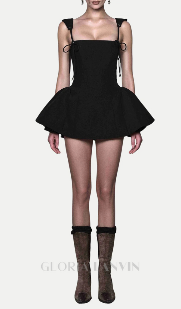CORA SCHWARZES SAMT-BUSTIER-KORSETT-MINIKLEID AUS GROSGRAIN