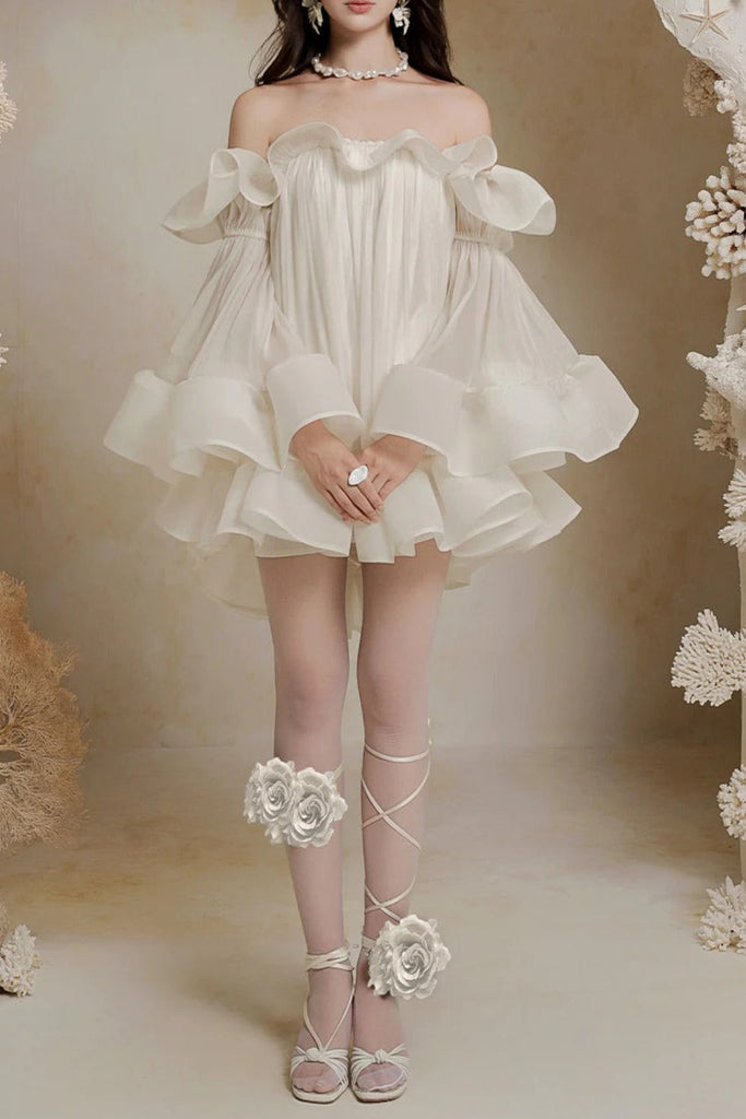 Bernice Minikleid aus Chiffon mit Rüschenlagen in Weiß