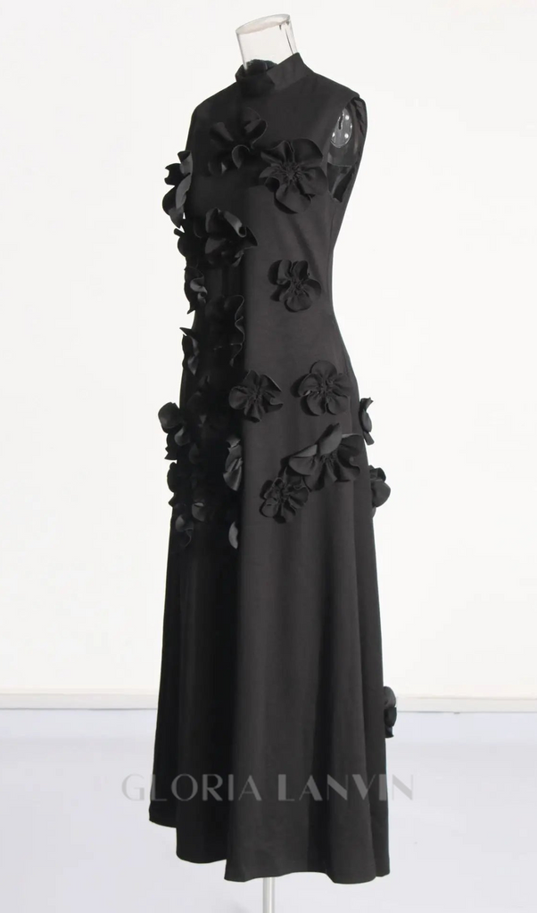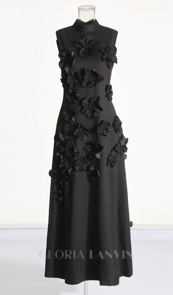 ANNONA Schwarzes, mit Blumen verziertes Maxikleid – Gloria Lanvin