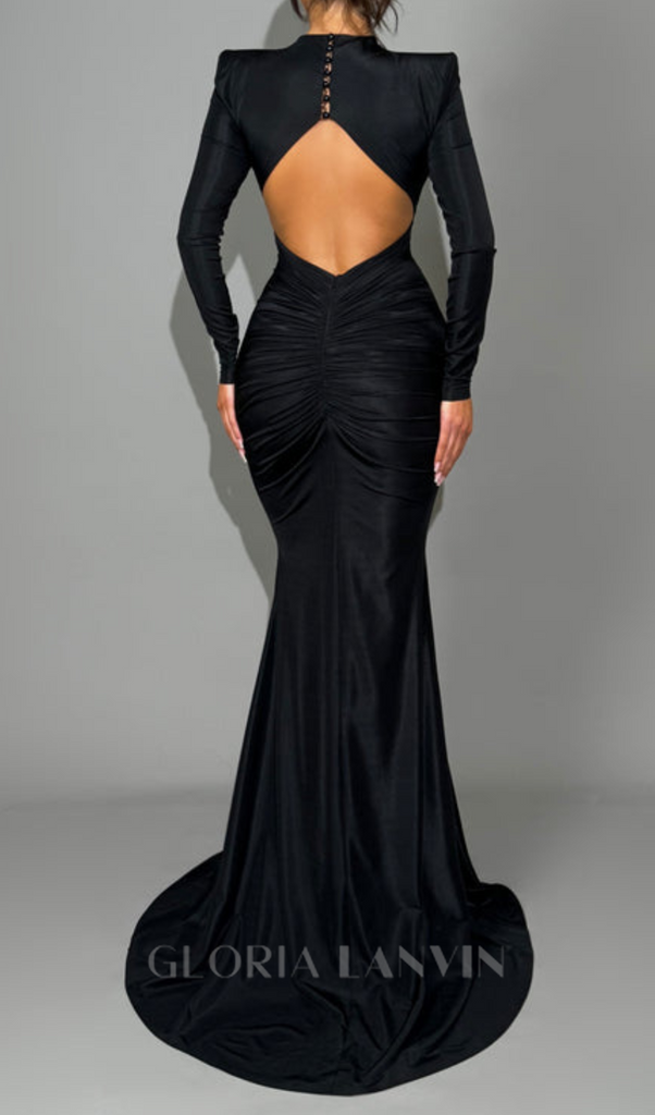 Schwarzes, mit Metall verziertes, luftiges Maxikleid – Gloria Lanvin