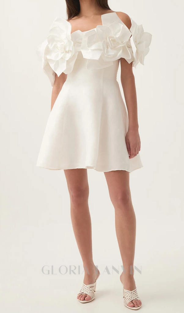Tina weißes, trägerloses schwarzes Minikleid mit 3D-Blumen