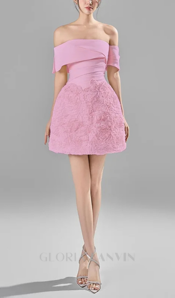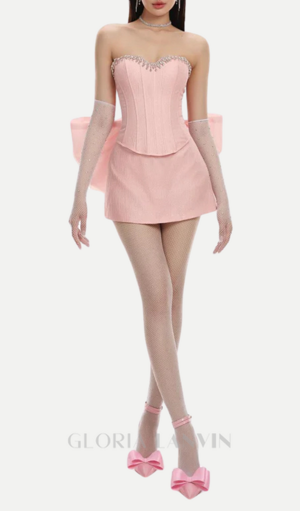 ROSA OFF-SHOULDER-MINIKORSETTKLEID MIT SCHLEIFE