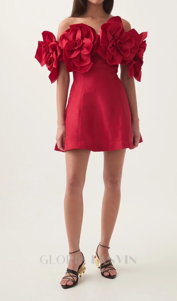 Skulpturales Rosen-Minikleid in Rot