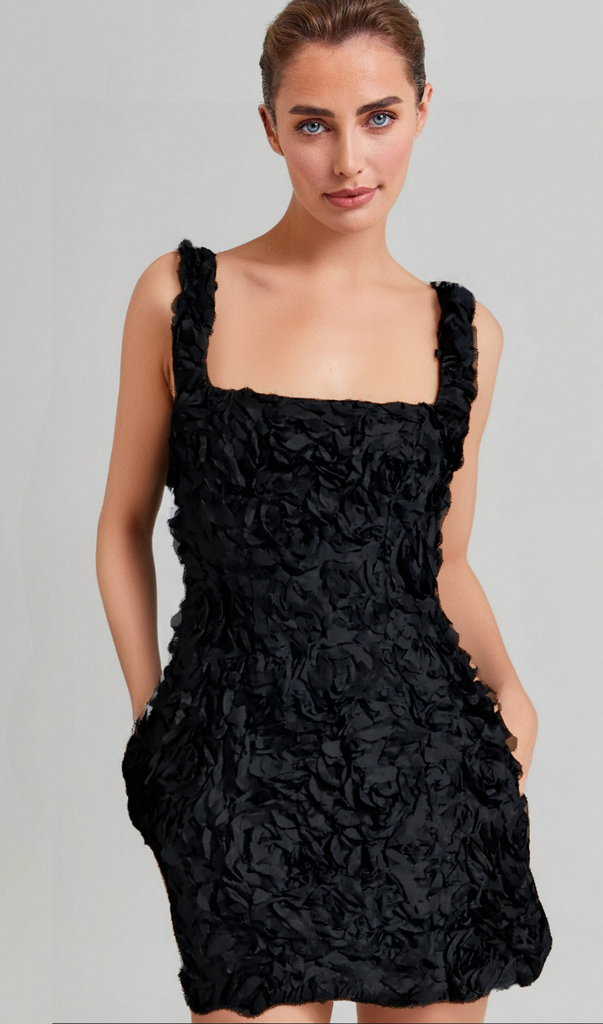 Zeigen Sie Ihre verspielte Seite mit unserem AQUATA MINI-KLEID MIT SCHWARZEM BLUMENMUSTER. Mit seinem leuchtend blauen Blumenmuster und der kurzen Länge ist dieses Kleid perfekt für fröhliche und unbeschwerte Sommertage. Mit diesem außergewöhnlichen und einzigartigen Kleid ziehen Sie alle Blicke auf sich und sind ein echter Hingucker. (Achtung: Kann ernsthaften Modeneid auslösen.)