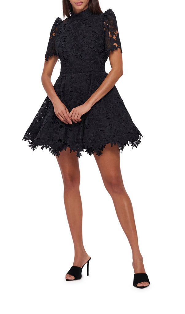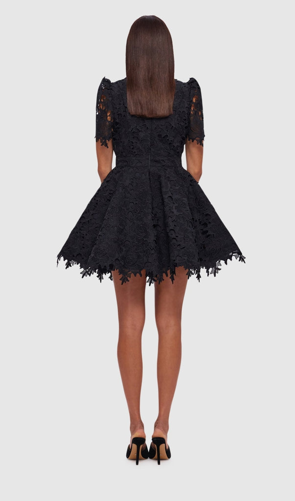 Machen Sie alle Ihre Freundinnen neidisch mit diesem frechen schwarzen Minikleid mit kurzen Spitzenärmeln. Perfekt für jede Jahreszeit, mit diesem Hingucker sind Sie für alles bereit. Lassen Sie sie vor Neid erblassen!