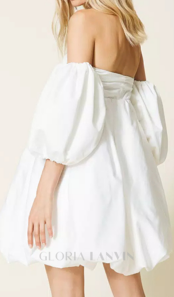 Weißes Minikleid aus Duchesse mit Puffärmeln