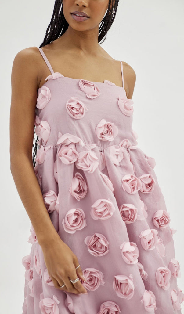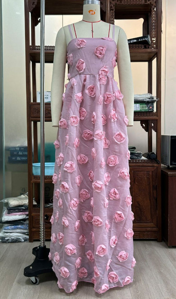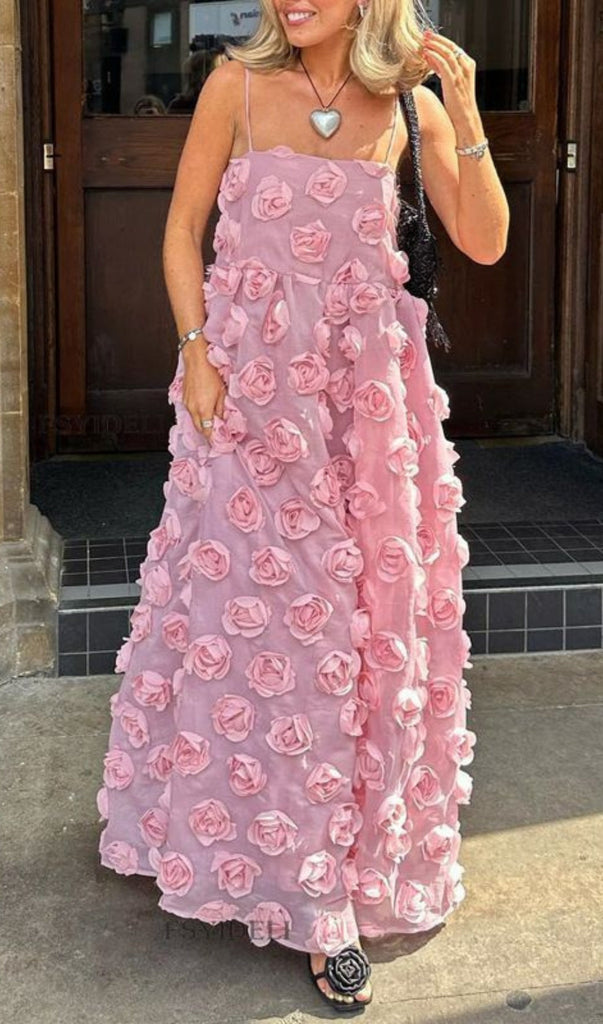 MAXIKLEID MIT APPLIKATIONEN IN ROSA