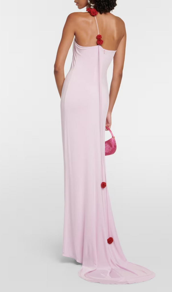 ONE-SHOULDER-KLEID MIT BLUMENAPPLIKATIONEN