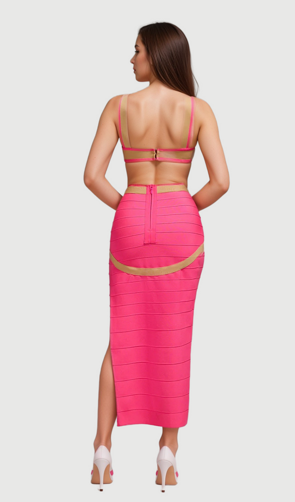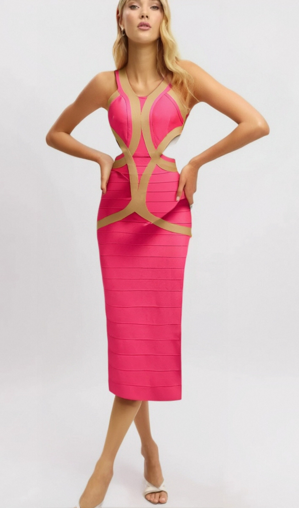 Mit unserem pfirsichfarbenen Maxikleid mit Cut-out-Details setzen Sie ein modisches Statement. Das elegante Cut-out-Detail macht dieses Kleid zu einem echten Hingucker und schmeichelt Ihrer Figur. Gefertigt aus hochwertigem Bandagenmaterial, bietet es einen bequemen und vorteilhaften Sitz. Ein Must-have für jeden Fashionista!