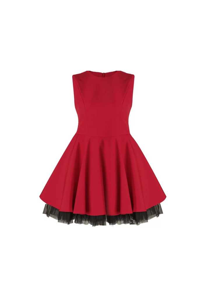 Carol ärmelloses Tutu-Kleid mit Netzstich in Rot