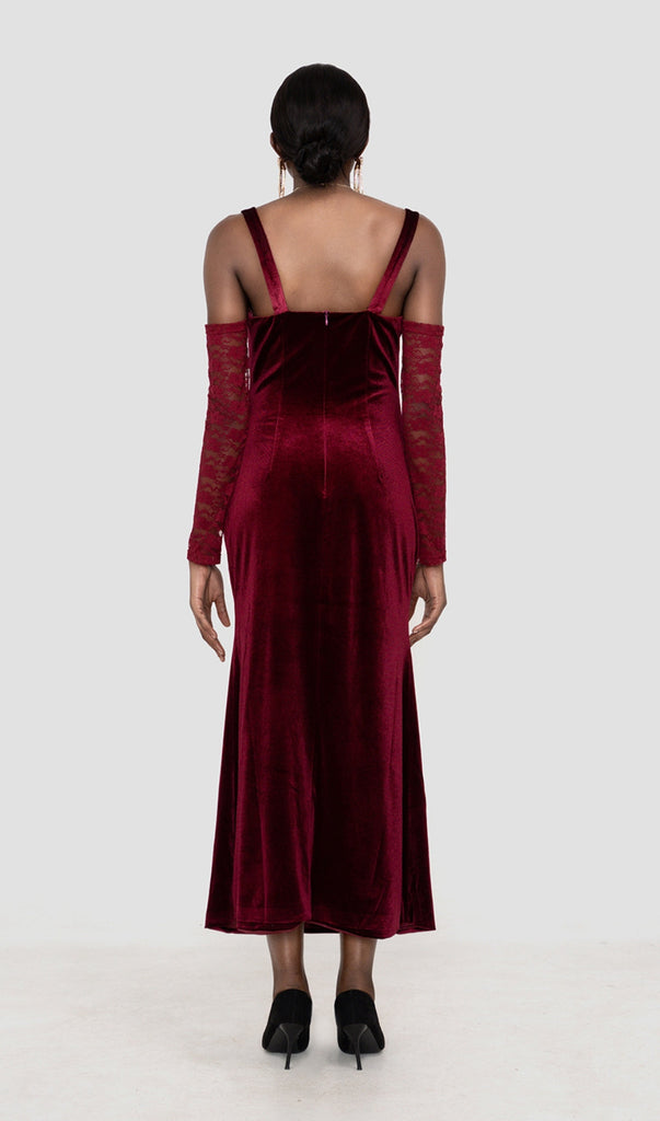 MAXIKLEID AUS SAMT IN WEINROT