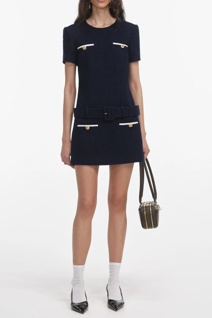 apphia Tweed Low-Rise-Hosen-Set in Marineblau