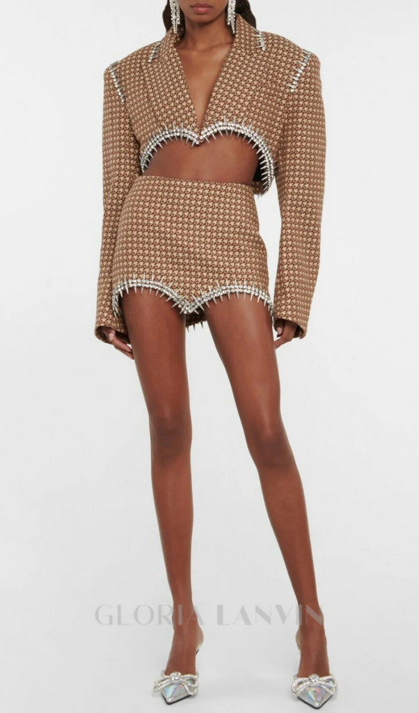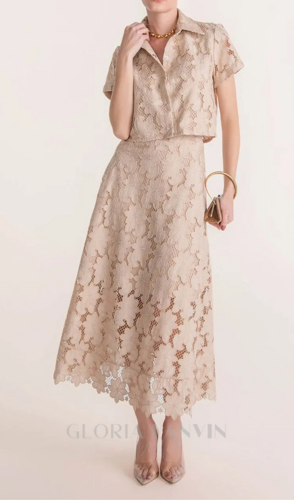 Guipure-Mesh-Midirock-Crop-Set in Apricot
