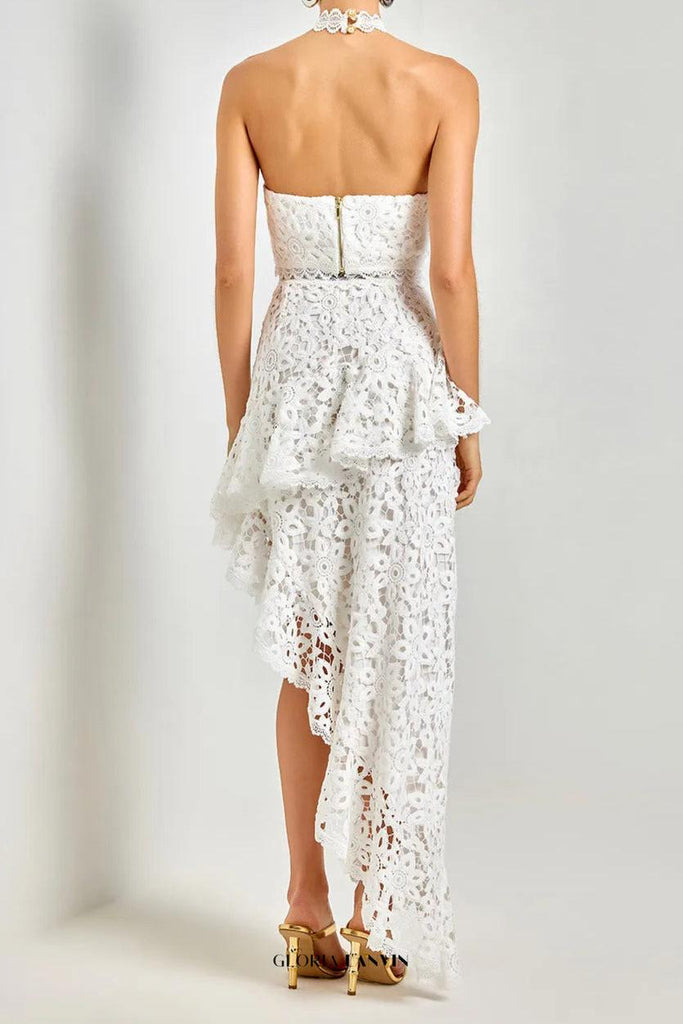 Ärmelloses Spitzenoberteil mit asymmetrischem Rock, weiß