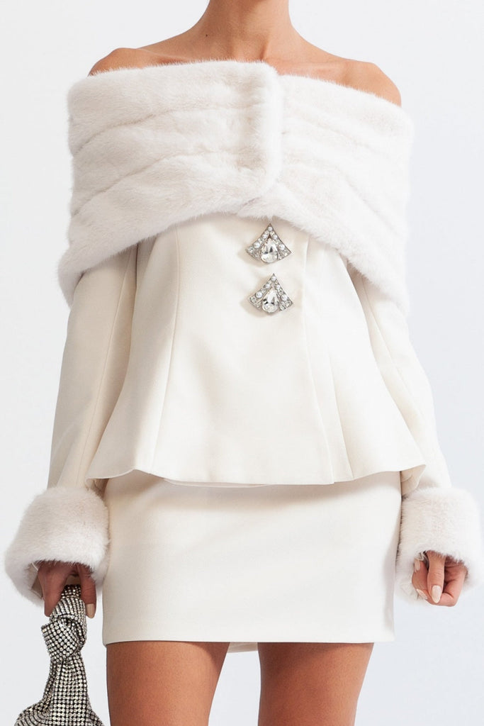 Gönnen Sie sich puren Luxus mit unserem zweiteiligen Eunice-Set aus schulterfreiem Kunstpelz. Gefertigt aus feinstem Kunstpelz, besticht dieses Set durch sein elegantes schulterfreies Design und ist perfekt für jeden Anlass. Fühlen Sie sich glamourös und stilvoll in diesem exklusiven Set.